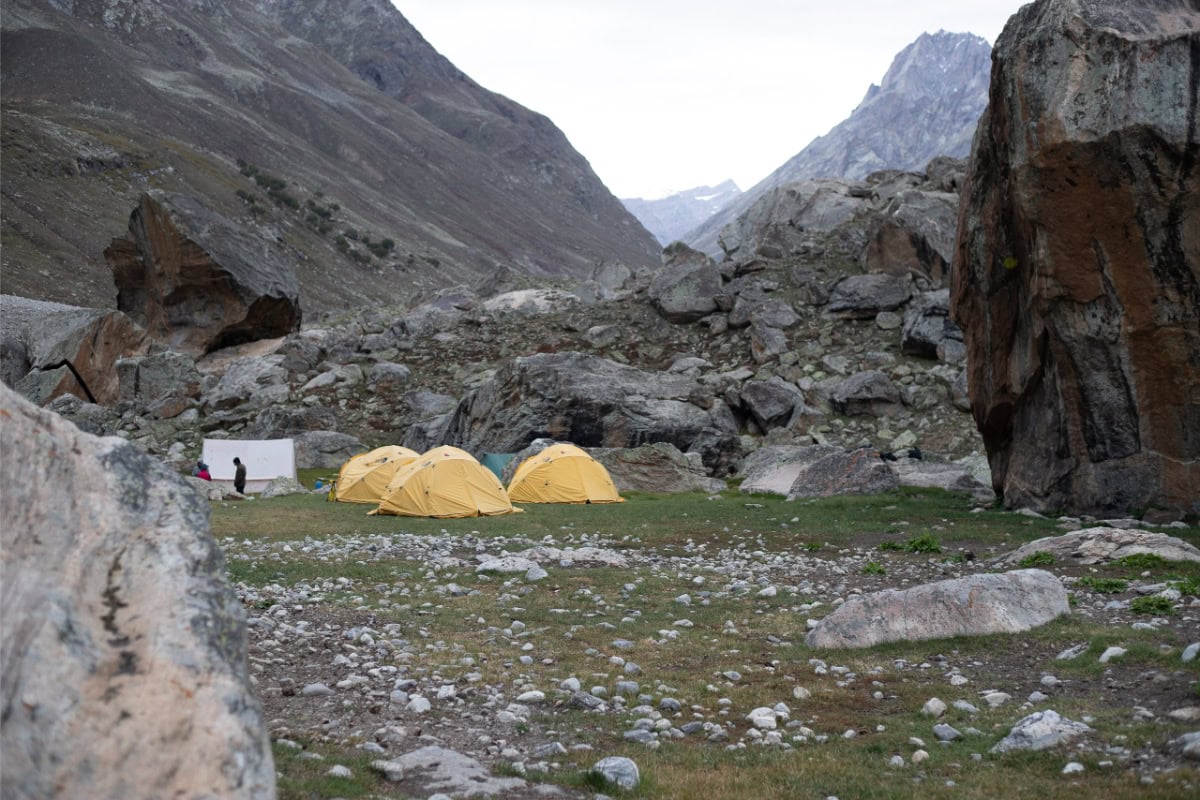 Today you drive 3 hours to Khanjar, the last village before pure wilderness. Civilization ends here: a handful of stone houses, barley fields stand out in a vibrant green against brown mountains. Your trek begins gently: 3 hours along an ancient glacial valley where silence has real weight. Orange tents appear against the vast emptiness. Juniper fires crackle. Stars come out sharp enough to cut – the experience of being in such an isolated and raw place is something spectacular, and is a feeling that’s hard to truly describe until you experience it for yourself.